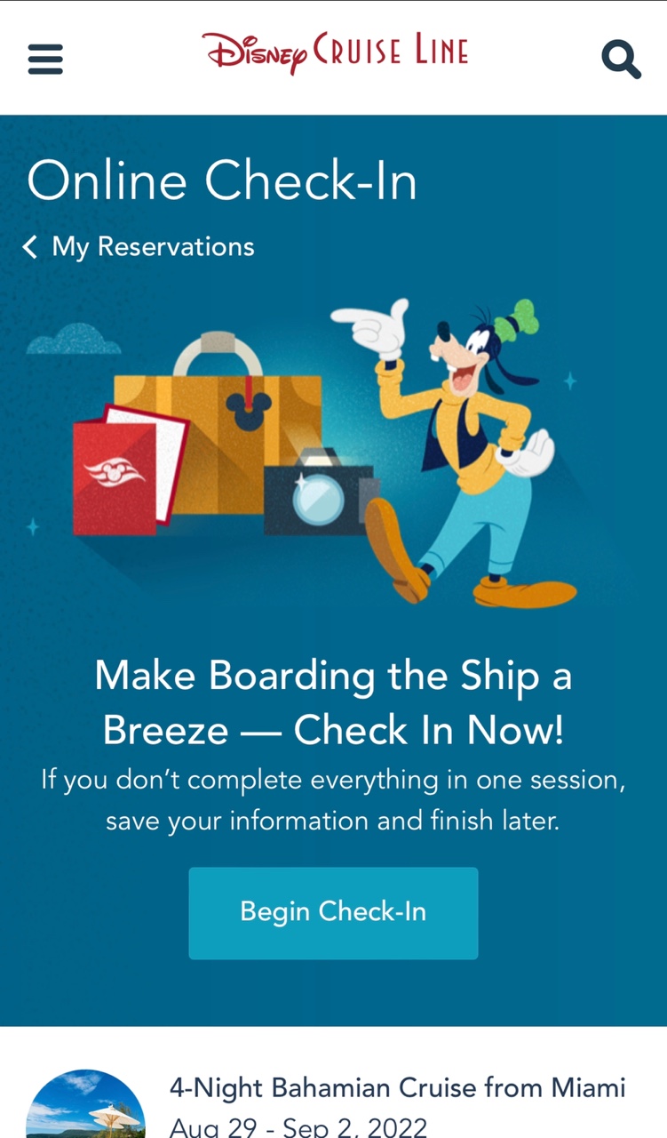 디즈니 크루즈 어플에서 체크인을 클릭하면 웹사이트로 이동이 되고 거기서 필요한 내용을 작성 하면 되요.