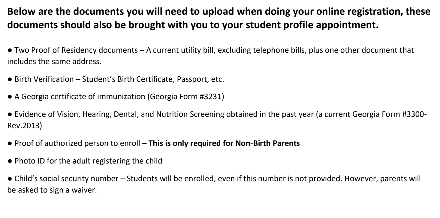 보통 요구하는 서류는 거주지 증명서 2장, 아이의 생일증명서(Birth Certificate), 부모의 신분증(Photo ID), 건강검진증명서(지난 1년간의 검진기록, 치과검진 기록 등)이 필요합니다.