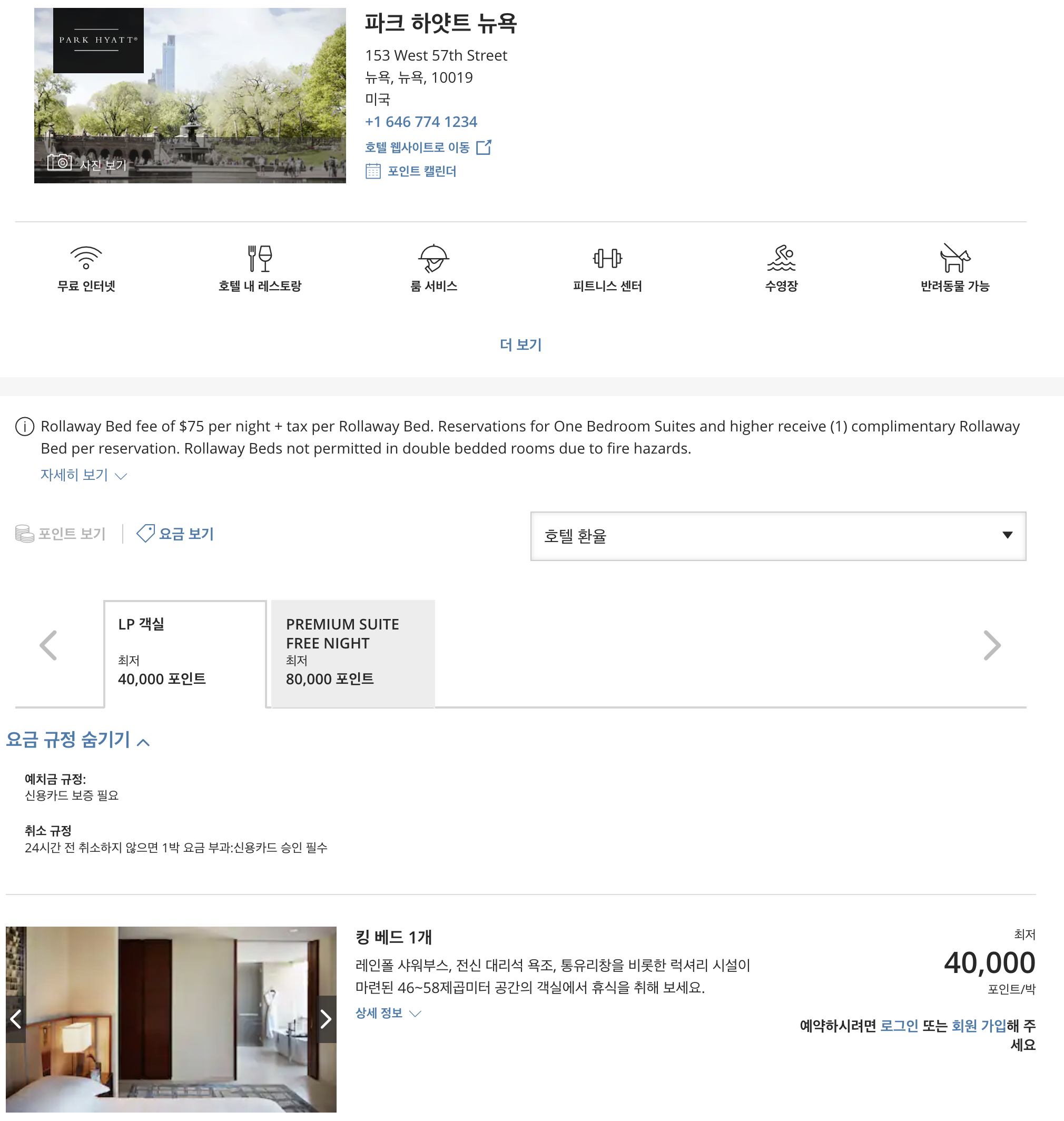 같은 날짜 같은 조건의 킹 베드 1개 룸이 40,000 포인트로 예약이 가능합니다.