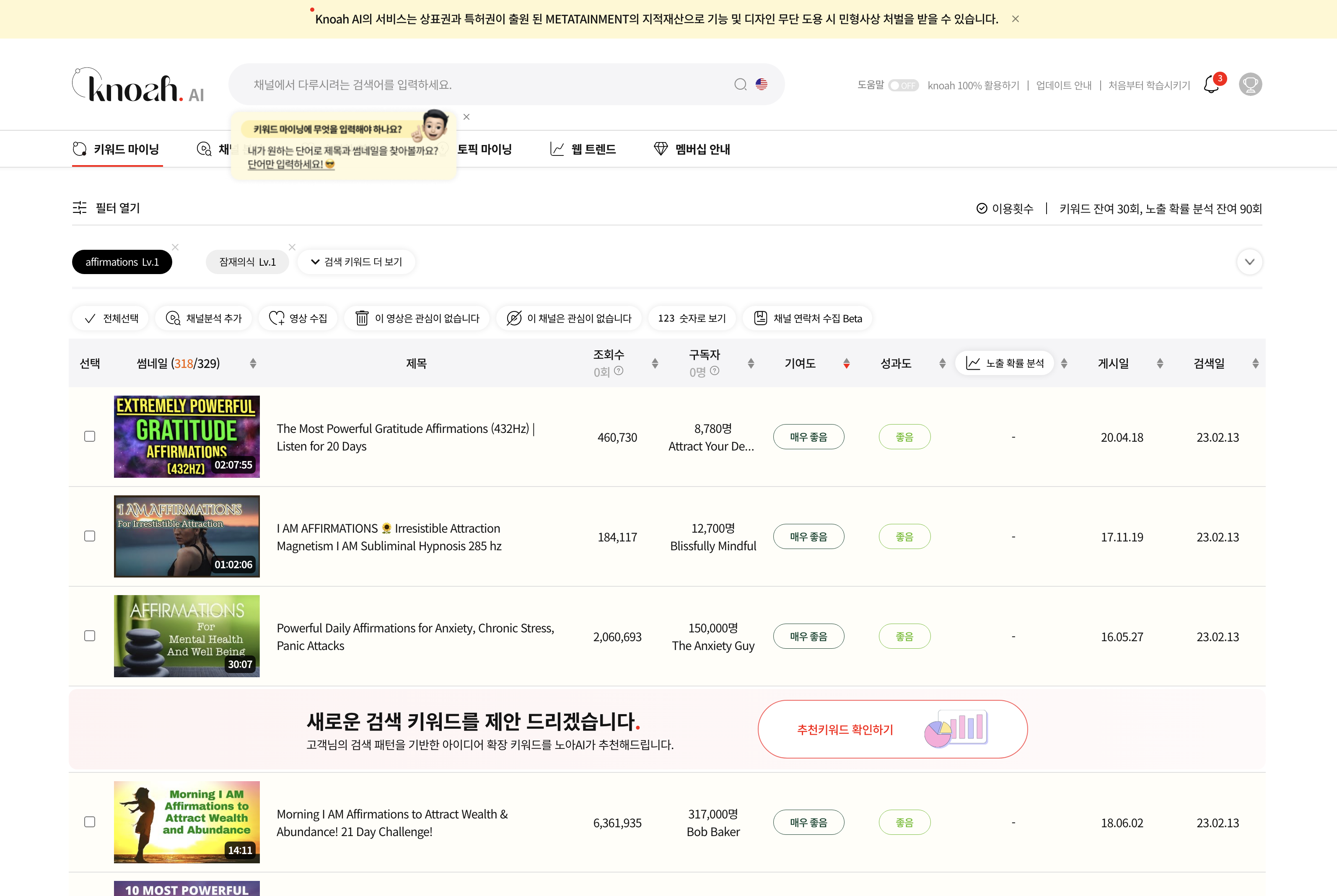 그래서 잡은 키워드는 Affirmation(확언) 이었고 예상외로 기여도와 성과도가 매우좋은 컨텐츠와 채널이 많았습니다.