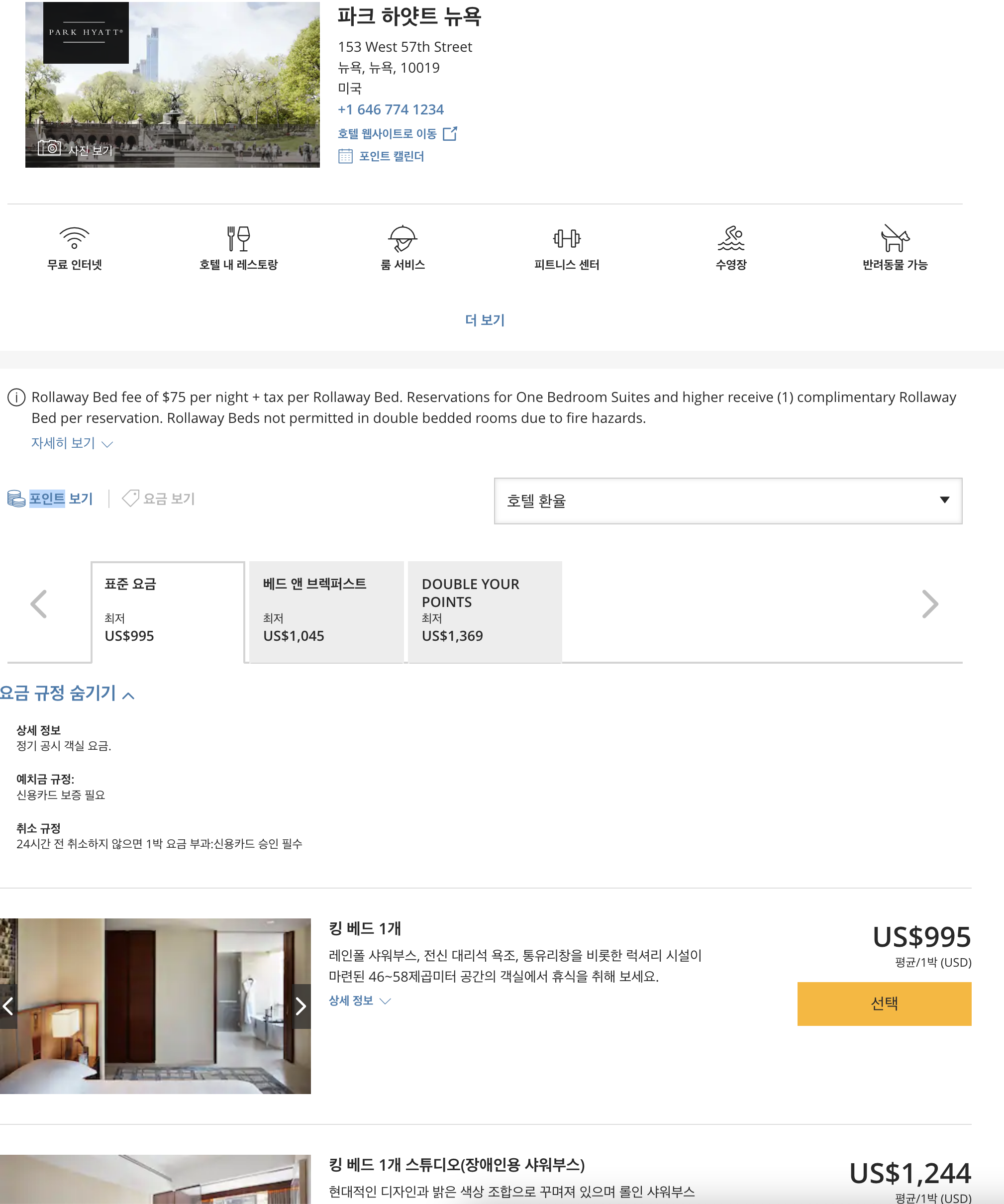 물론, 이런 인기있는 호텔의 경우 성수기에는 포인트로 투숙 가능한 방을 구하는게 어려울 수도 있습니다.