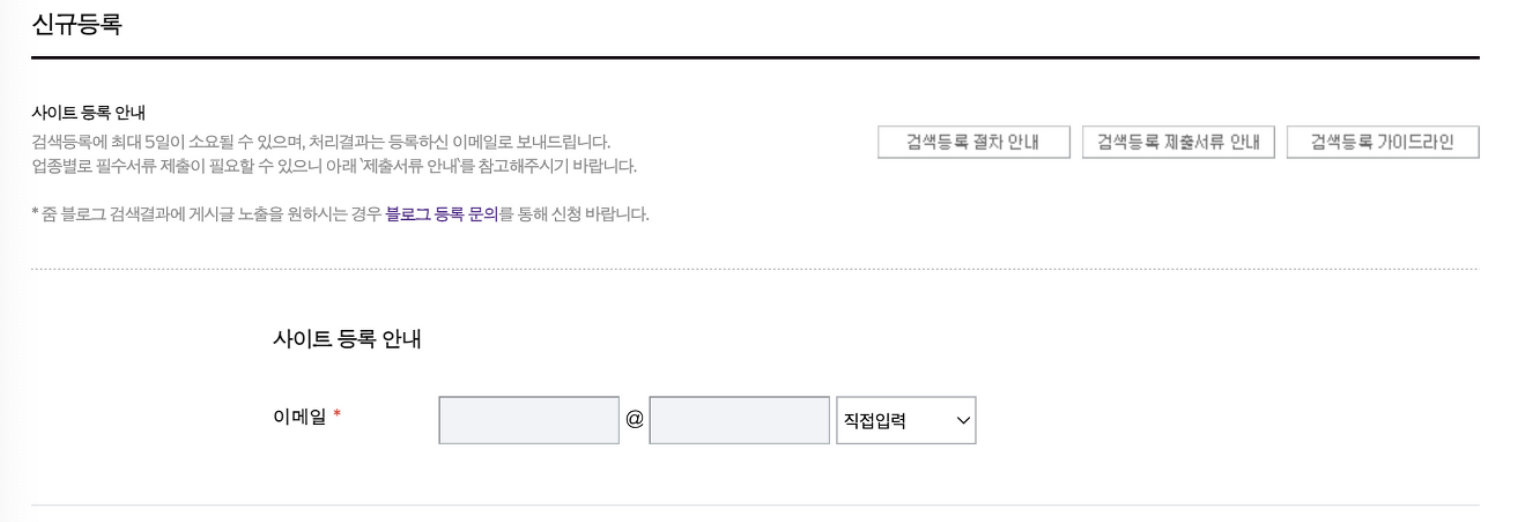 - 현재 등록되지 않은 사이트만 신청 할 수 있다. (복수 신청 방지를 위함인 듯 합니다)